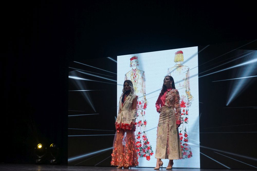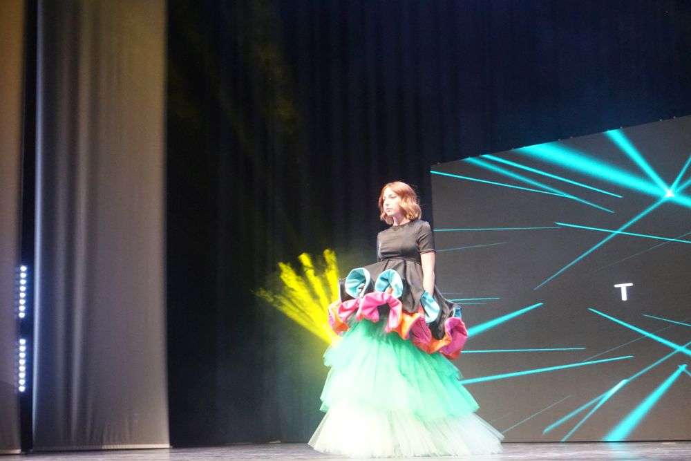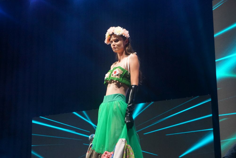 È, però, il veneziano Federico Rossi a conquistare l’approvazione della giuria, guadagnandosi il podio con due silhoutte diverse che rappresentano, ognuna a suo modo, il suo personale universo creativo. Da un lato la stravaganza, l’eccesso: una maxi gonna asimmetrica con balza arricciata con un crop top a uncinetto. Dall’altro la semplicità, il rigore: un pantalone palazzo con una giacca destrutturata stile kimono e un corsetto. Entrambe accomunate da un animo romantico, da uno stile eclettico, dal colore e dal riciclo. Tutti gli outfit del primo classificato, infatti, sono stati realizzati con scampoli e ritagli di stoffa, a cui dare nuova vita ricreando tessuti patchwork. Federico Rossi, con la sua originalità e la particolare cura e attenzione alla dimensione dell’ecosostenibilità, si è aggiudicato, oltre al premio in denaro, lo stage in Olanda presso “Addy Van Den Krommenacker”, lasciando estasiati pubblico e giuria.