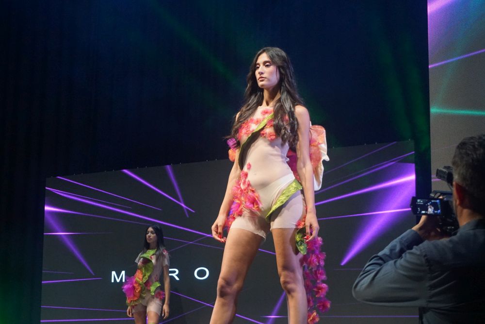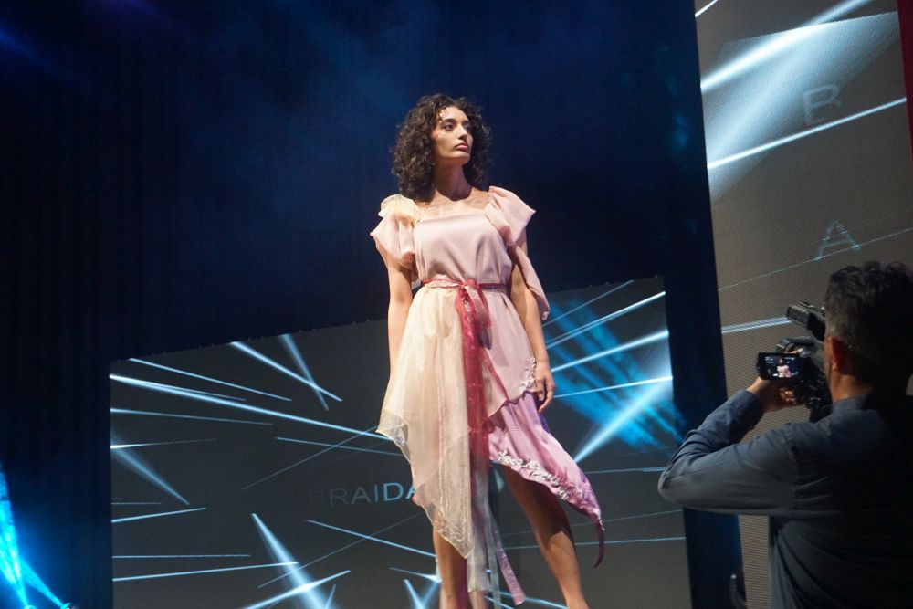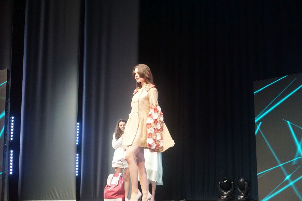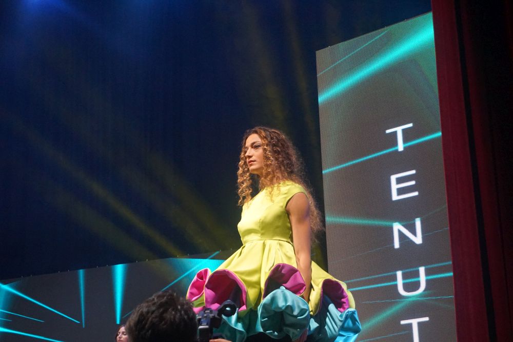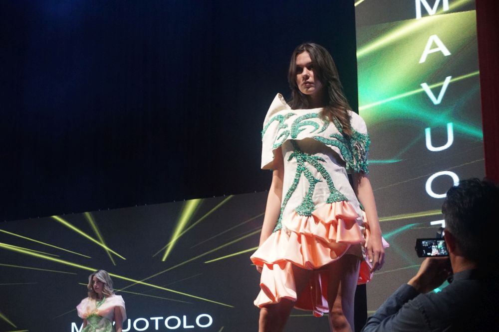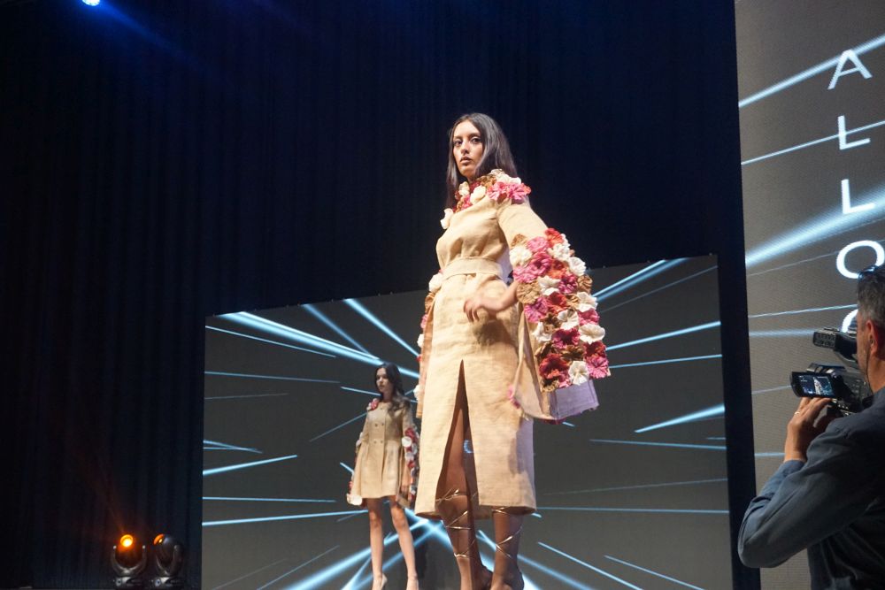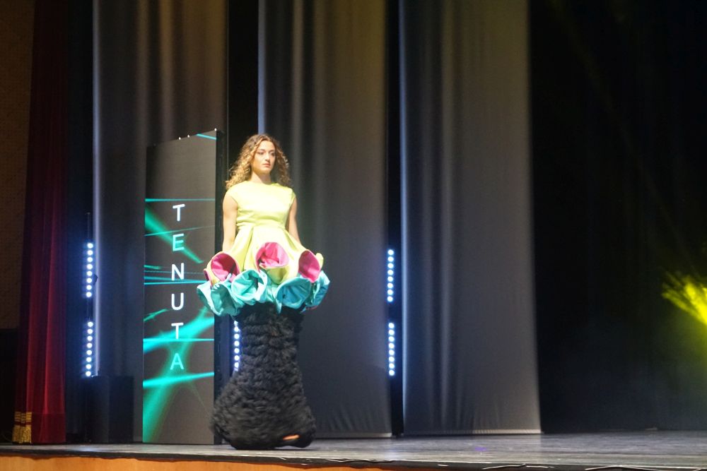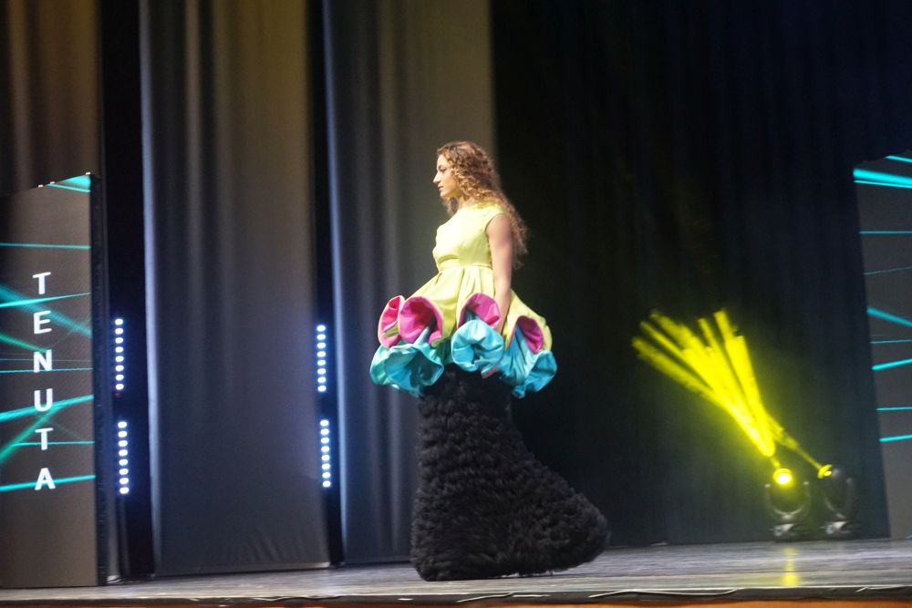 Al terzo posto Rosa Allocca che, per la sua mini-capsule ha scelto tessuti grezzi ed ecosostenibili. La juta, coltivata in Africa ancora oggi, è una fibra ecosostenibile e riciclabile da utilizzare al pieno della sua naturalezza, nel suo colore e nella sua semplicità senza essere trattata. Il secondo tessuto scelto è stata, invece, la garza di cotone, anch’essa fibra naturale ed ecosostenibile, tinta con tecniche naturali utilizzando i filtri di tisane (frutti rossi e mirtilli) e la rapa rossa per creare il colore fucsia, ed il caffè per creare il colore beige/marrone, con dei fiori abbinati ai capi. La mini capsule presentata e che le ha assicurato la presenza sul podio è stata, quindi, composta da due capi: il primo un cappottino doppio petto con taglio in vita, pince super femminili e bottoni rivestiti in juta, e maniche lunghe con dei lunghi spacchi. Il secondo un abito midi con collo alto e spacco laterale sul fondo; le maniche anch’esse lunghe e con dei lunghi spacchi. Entrambi gli abiti sono stati arricchiti da fiori colorati, realizzati e applicati a mano creando movimento e fluidità. Oltre alla Moda Movie Gift Bag, che contiene i prodotti offerti da Silkomo, Caffè Aiello, iGreco e Amarelli, e assegnata a tutti i vincitori, Rosa Allocca si è aggiudicata, con il terzo posto, anche un prestigioso stage presso “Maria Laurenza Moda e Sposa” a Caivano (NA).