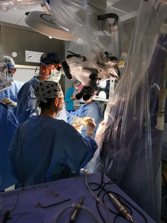 Grazie ai progressi in campo anestesiologico e chirurgico, è stata effettuata la rimozione di una lesione intracerebrale primitiva localizzata in area eloquente, responsabile di deficit neurologici focali ed episodi di epilessia. La tecnologia, la specializzazione e l’approccio multidisciplinare consentono infatti con questa tecnica di mantenere il paziente sveglio, privo di dolore e pienamente partecipe all’intervento, tanto da consentire un dialogo tra paziente ed equipe medica durante l’operazione, ove il paziente è consapevole di tutto ciò che sta accadendo.