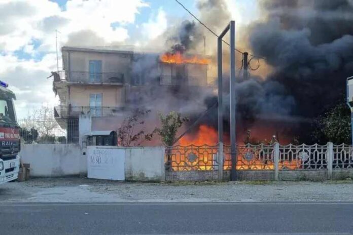 Un incendio è divampato, per cause ancora da accertare, nel deposito di un negozio a Lamezia Terme, in viale San Bruno. Le fiamme hanno avvolto l’intero fabbricato. Secondo quanto appreso una famiglia è rimasta bloccata all’ultimo piano, adibito ad abitazione, ed è stata messa in salvo dai Vigili del fuoco. Sul posto, oltre ai pompieri, anche la Polizia di Stato, i Carabinieri e il personale del 118. Stando alle prime informazioni i componenti della famiglia avrebbero immediatamente lanciato dalle finestre alcune bombole del gas per evitare che scoppiassero. Un’altra famiglia vicina è stata evacuata.