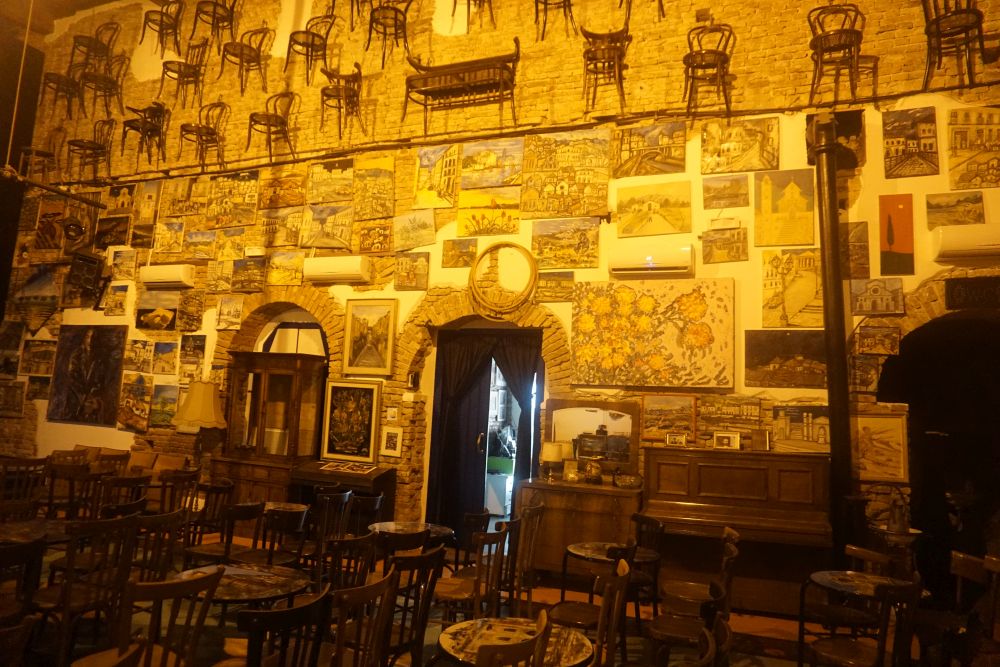 Un piccolo gioiello di arte e cultura, con una pavimentazione fatta a mano che rievoca le opere di Vincent Van Gogh, in cui colpisce la vista anche un’antica foto del cantante cosentino Brunori: “Qui sono passati molti artisti, ma non l’ho mai voluto qualificare per l’artista, piuttosto per le storie che rappresentavamo”. Un teatro particolare, in cui dopo la rappresentazione si serviva sempre una piccola cena. Un modo per socializzare, conoscersi, fare comunità, quello che secondo Eduardo oggi manca più di ogni altra cosa: “Ciò che manca a questa città è lo stare insieme, è più forte di noi, dobbiamo essere singoli padroni delle nostre clientele, non dividerle con nessuno”.
