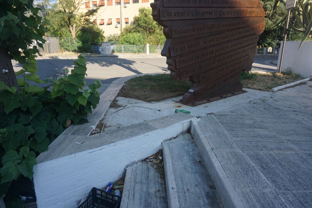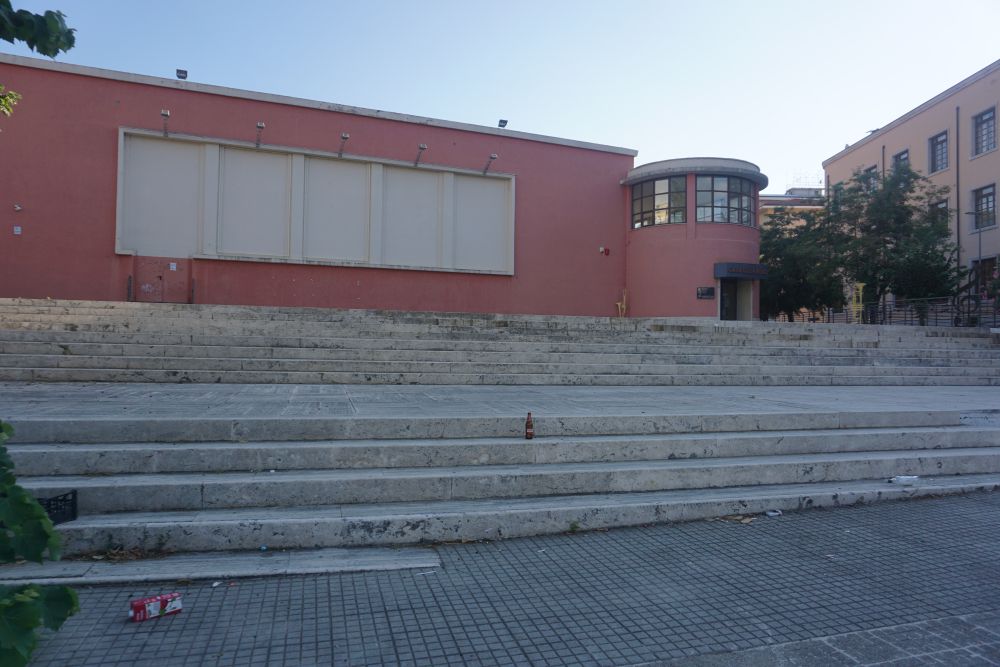 Chiaramente in uno stato degradato e indecoroso, così come lo è la piazza che lo ospita che, solo teoricamente, straborda di cultura, con la Casa della Musica inaugurata al tempo dal grande Franco Battiato, e il Liceo Lucrezia della Valle, riconosciuto come liceo musicale. Un tripudio di cultura trasformato in uno spettacolo doloroso per la vista e per il cuore, nell’osservare, ad esempio, come l’opera dedicata a Lucio Battisti ed inaugurata non molto tempo fa alla presenza di Mogol, sia contornata oggi da bottiglie vuote e rifiuti di ogni genere. Semplicemente il segno di quanto lo scarso rispetto che, nel corso degli anni, le amministrazioni hanno riservato alla cultura, abbia inevitabilmente travolto anche la città stessa che, privata della propria storia, lentamente si prepara a morire con essa.