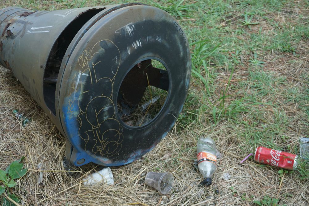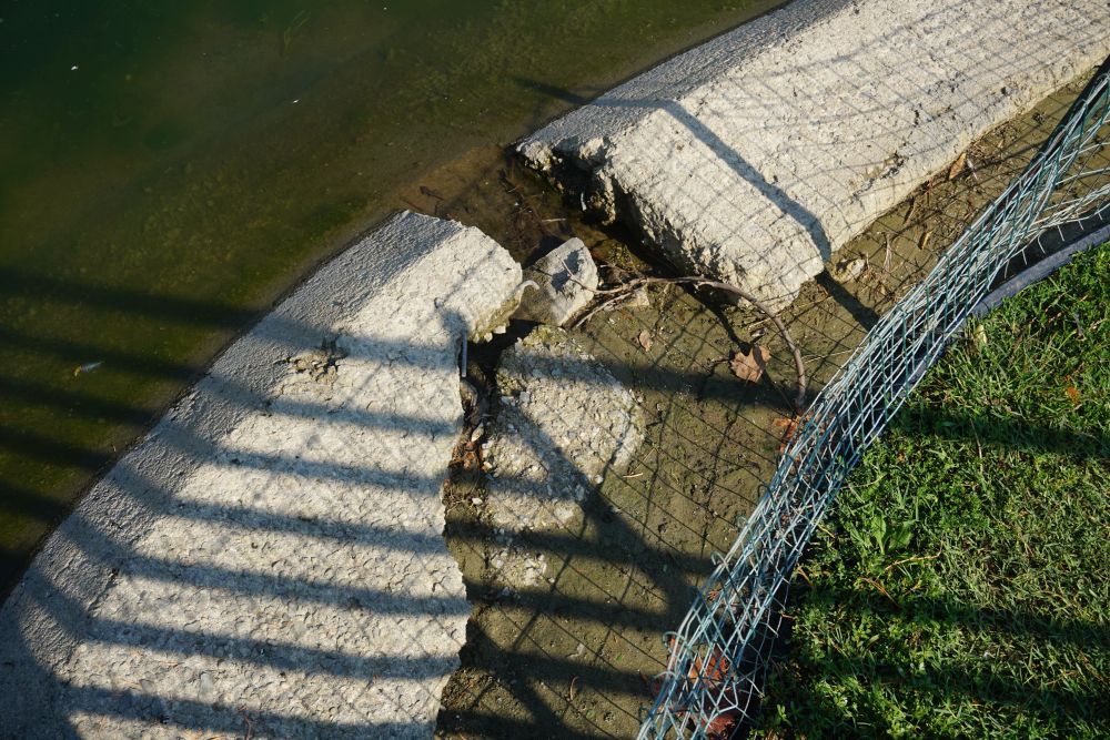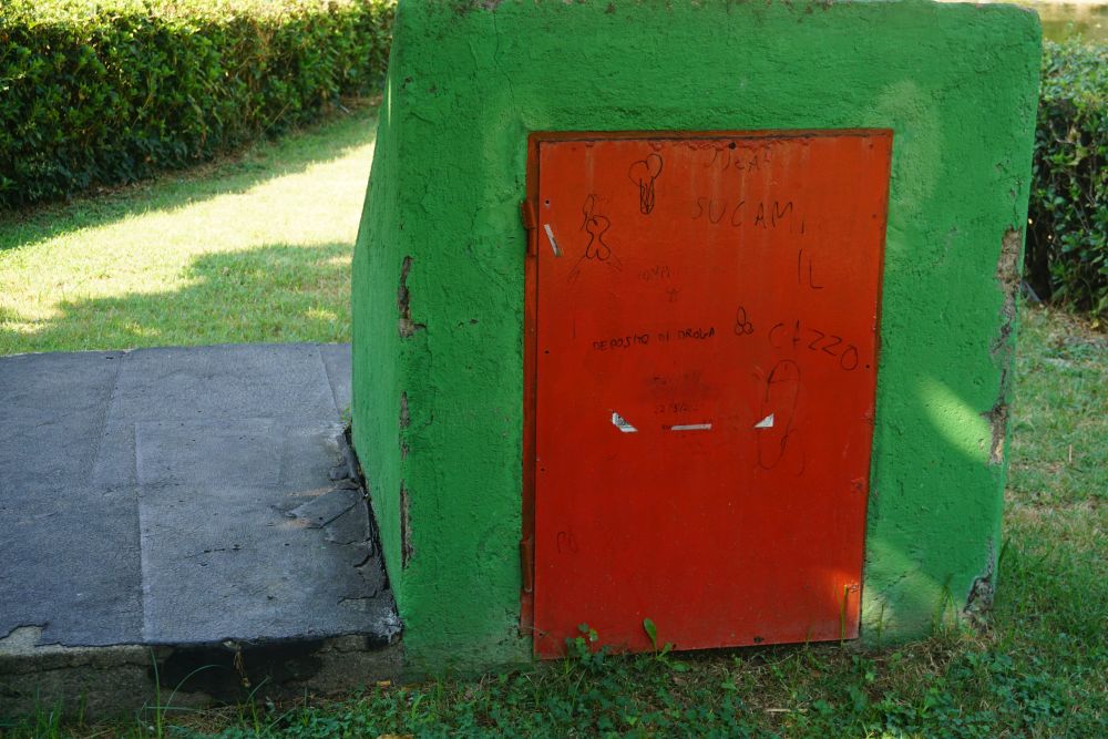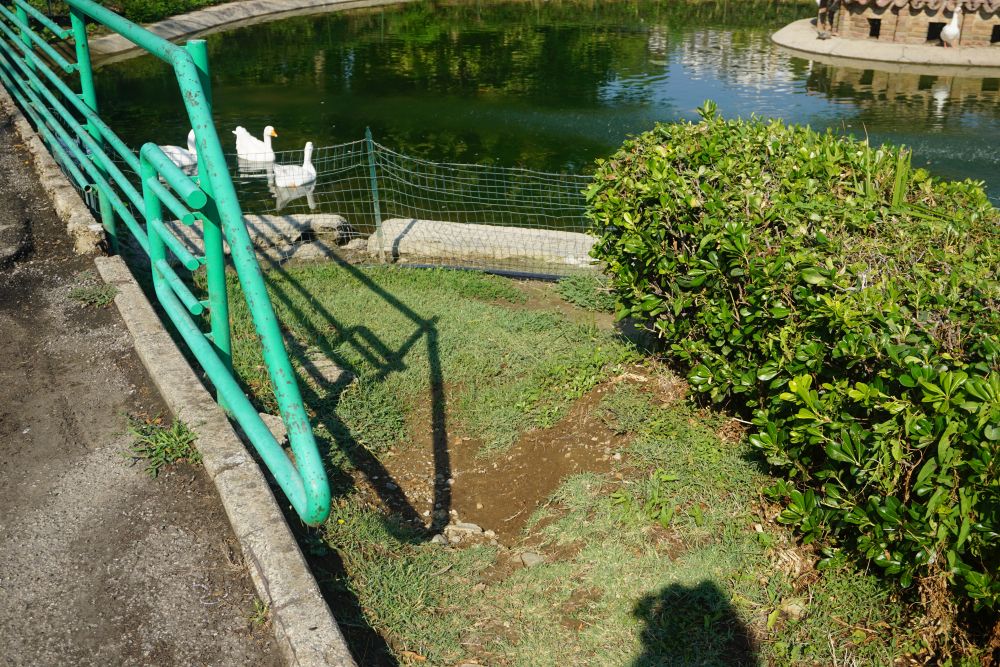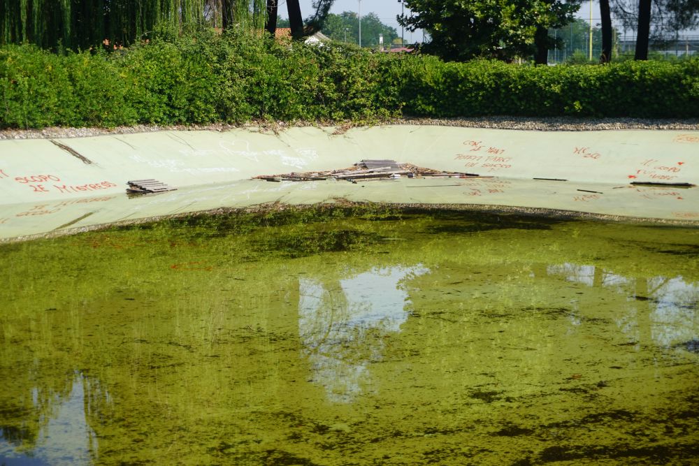 La situazione peggiora quando, dopo aver superato le pericolanti transenne e il degradato “tunnel” che conduce alla zona più antica del parco, si approda nell’ala est, dove ogni bel ricordo d’infanzia viene devastato da un terrificante spettacolo. Erba alta e incolta, rifiuti in ogni anfratto, cestini completamente rotti e riversati nella natura con tutto il loro contenuto, così come quei pochi giochi ancora presenti, anch’essi danneggiati, vecchi e ormai inutilizzabili. Quello che una volta era un grande lago, appare oggi come un’infinità putrefatta di acqua e rifiuti di ogni tipo. Un luogo desolato, abbandonato, diventato probabilmente casa per qualche senzatetto, come suggerisce una tenda da campeggio trovata fra l’erba. Inoltrarsi in tutto questo mette quasi un po’ di paura, e pensare che un bambino, allontanandosi per un attimo, possa facilmente accedervi, rischiando anche di farsi male, mette i brividi. Dappertutto recinzioni rotte, odore insopportabile, cancelli chiusi con cordicelle di fortuna, fontane inutilizzabili, pericoli costanti, vandalismo, rami di alberi tagliati e poi abbandonati, erba talmente alta da non rendere riconoscibile neanche quello che una volta era un sentiero.