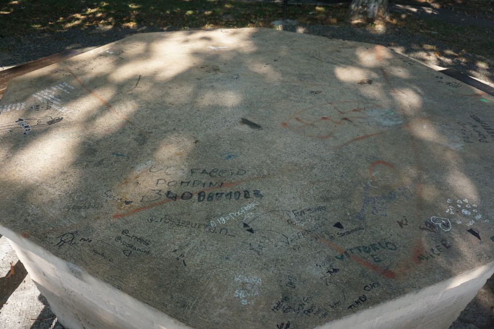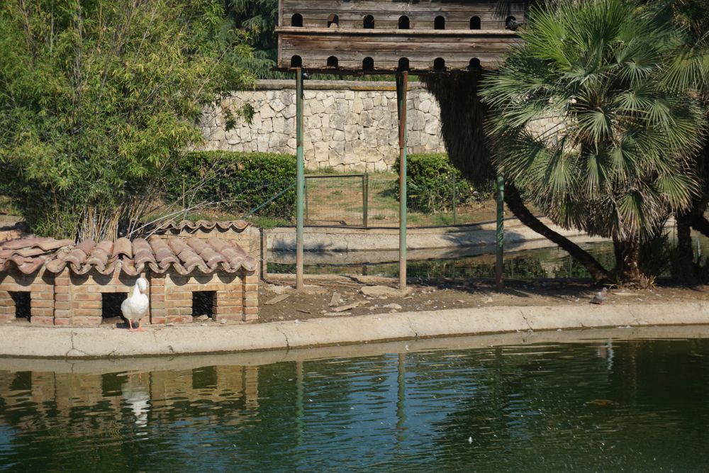 Lo afferma chi in quel parco passa anche le domeniche d’agosto a chiacchierare insieme a noi, denunciando una situazione a dir poco disastrosa: “Ci siamo ritrovati il Parco Robinson che, comunque, era curato, pieno di verde, con animali di ogni tipo, ridotto con queste povere dieci ochette, e due piccole tartarughe, che nessuno cura, nessuno sorveglia, non si sa come stanno realmente e non vengono nutrite, se non dai cittadini che passano di qui e lasciano qualche mollica di pane”. E lo stato di abbandono appare evidente, ad occhio nudo, nell’acqua putrida in cui le ochette sguazzano (e a poco vale il maldestro tentativo dell’amministrazione di ripulirla tempestivamente in seguito alle numerose segnalazioni), nella recinzione distrutta in diversi punti, poco sicura, facilmente accessibile da chiunque voglia fare del male o del bene ai poveri animali superstiti. È evidente nello stato della piccola porzione di terreno che le ochette hanno a disposizione, piena di resti delle casette degli altri poveri amici piccioni che, inesorabilmente, crollano nell’abbandono generale. È evidente nella mancanza di cura del verde circostante, nella mancanza di pulizia, nella mancanza di decoro. Perfino il tavolino intorno al quale questa intervista è stata realizzata non ha nulla di decoroso: sporco, ricoperto di scritte, vandalizzato da chiunque ne abbia voglia, certo di non essere punito né mai neanche lontanamente individuato.
