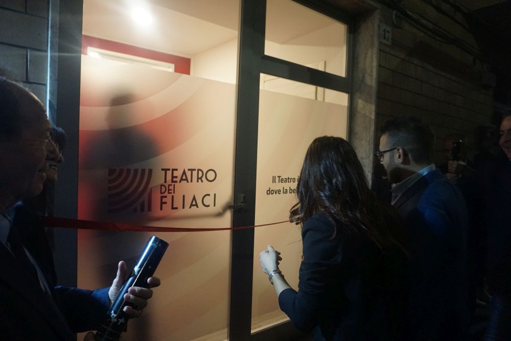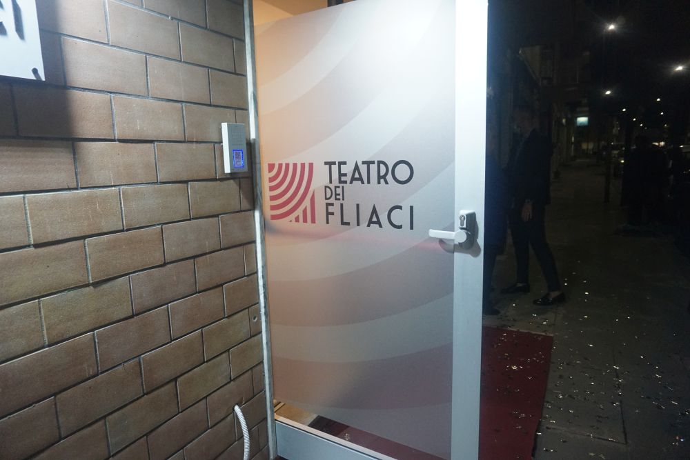 “Il Teatro è quell’epifania dove la bellezza si fa civiltà”. Con questa frase, incisa sulla porta d’ingresso, il “Teatro dei Fliaci” accoglie i primi curiosi giunti numerosi a festeggiarne l’apertura. “Io e Teresa la pensammo in un viaggio di ritorno da Roma” – spiega Luca. “Questa frase rappresenta il senso di ciò che noi intendiamo fare qui. Pensiamo che il teatro non sia soltanto qualcosa di performativo, ma che risieda nell’essenza del teatro l’importanza del senso civico e umano. Quello che oggi andiamo ad inaugurare vuole essere, nel senso più intrinseco e stretto, un baluardo, un bastione di cultura, perché crediamo che l’arte abbia questo potere. Un teatro per le persone, ma soprattutto con le persone”. Ed è proprio in queste parole, in quelle pronte ad accogliere i cittadini all’ingresso, e in quelle visibili negli spazi stessi del teatro, che risiede il valore vero di quella che, banalmente, può apparire come una semplice apertura di un nuovo e semplice teatro cittadino. Tecnicamente lo è, ma simbolicamente è molto di più. In un territorio in cui un grande teatro di tradizione, il Rendano, soccombe nel silenzio, nell’incuria e nella malagestione, in un territorio in cui gioielli quali quello del maestro Eduardo Tarsia, l’Officina delle Arti, tristemente si spengono dilaniati da promesse e parole mai mantenute, il “Teatro dei Fliaci” è un grido di protesta a una città che muore, è un grido di speranza a una cultura che resiste, è un grido di forza all’intera comunità e all’intero mondo artistico.