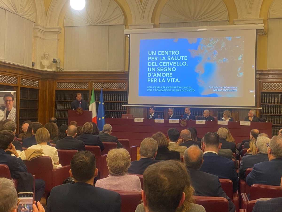 È stato firmato in Senato il protocollo d’intesa tra Unical, CNR e Fondazione ‘Le idee di Chicco’ per la realizzazione, presso l’Università della Calabria, del ‘Centro Nazionale per la Salute del Cervello e le Neuroscienze Avanzate’. La struttura, che sarà intitolata a Francesco Occhiuto, ha l’obiettivo di sviluppare ricerche sui meccanismi cerebrali alla base delle malattie neurologiche e psichiatriche e di migliorare la diagnosi precoce. “Con la firma di questa convenzione, celebriamo un passo importante – ha detto la vicepresidente del Senato, Licia Ronzulli – Non è solo un progetto scientifico ma un segno d’amore verso la vita”.