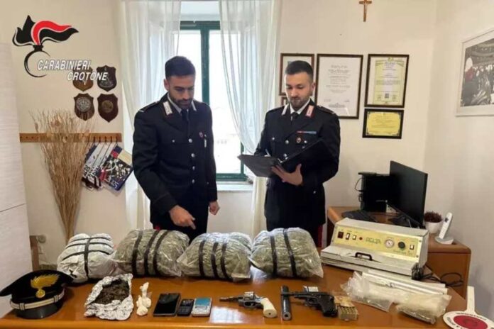 Un deposito di armi e droga è stato scoperto, a Strongoli, dai carabinieri della Compagnia di Cirò Marina in un locale adiacente all’abitazione di commerciante di 43 anni arrestato in flagranza per detenzione ai fini di spaccio di sostanze stupefacenti, di un’arma alterata, una clandestina, numerose munizioni, nonché per furto aggravato di energia elettrica.