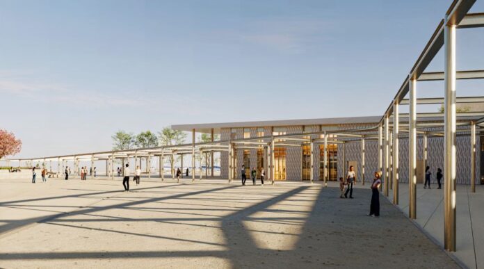 Nel dettaglio, è prevista una struttura leggera a pensilina per la definizione degli spazi aperti, con funzioni di ombreggiamento e illuminazione, capace di garantire flessibilità e riconoscibilità agli spazi pubblici.