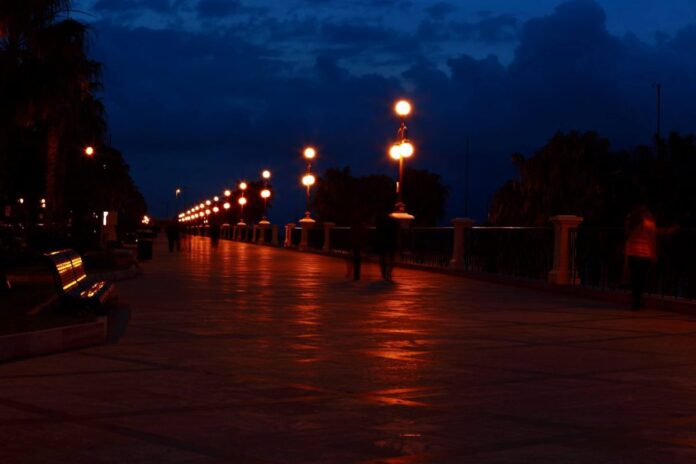 Un lungomare di Reggio Calabria che non è più quello estivo, quello affollatissimo. Deserto, più buio, meno gioviale. Ventoso, con l’autunno che bussa alle porte, nella prima giornata di allerta meteo dopo l’estate. Una volante della Polizia di Stato, in servizio per perlustrare il centro storico.