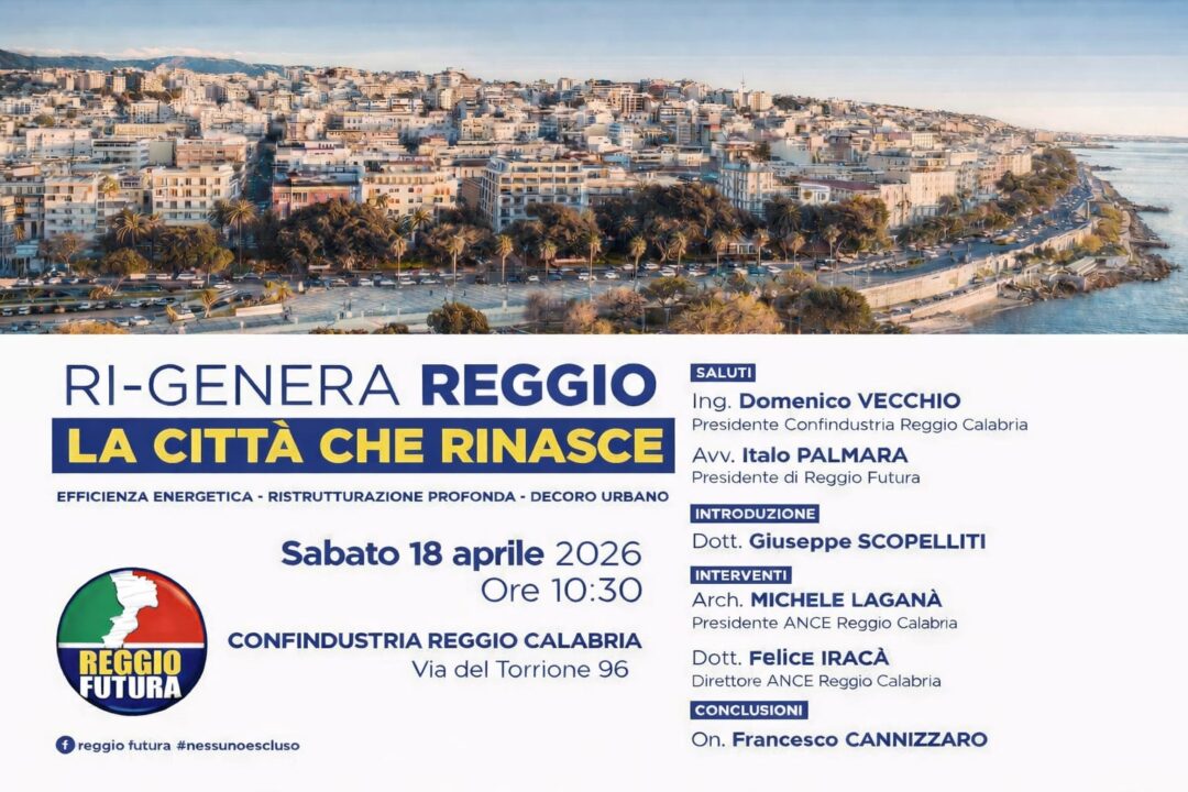 Sabato 18 aprile alle 10:30 presso i saloni di Confindustria a Reggio Calabria – Via del Torrione 96 – verrà presentato il progetto “RI-GENERA REGGIO – LA CITTÀ CHE RINASCE”.