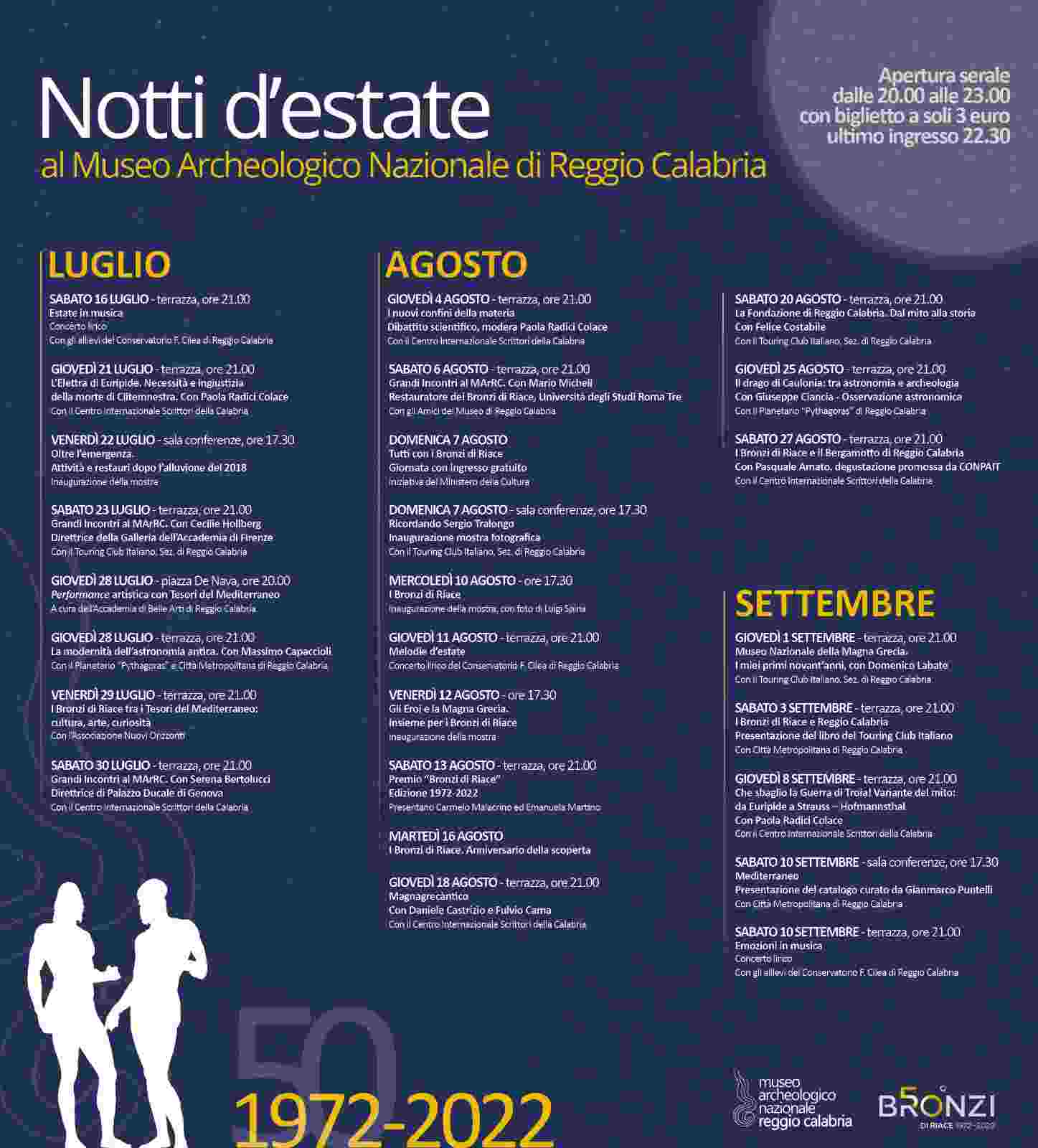 Un programma denso di appuntamenti per celebrare i 50 anni dal ritrovamento dei Bronzi di Riace. Questa mattina, in conferenza stampa, il direttore del Museo Archeologico Nazionale di Reggio Calabria, Carmelo Malacrino ha presentato l’offerta culturale che accompagnerà il pubblico del MArRC per tutta l’estate.