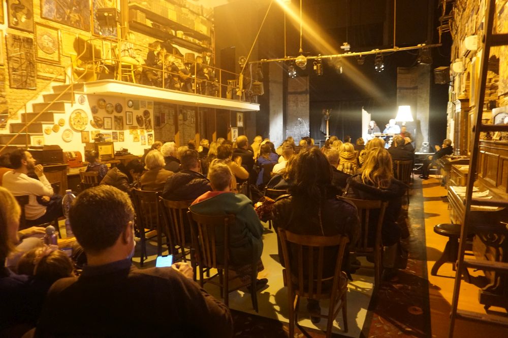 di Roberta Mazzuca – Un gioiello di rara beltà è tornato a brillare nel cuore più antico della città di Cosenza. Non luccica e non risplende esternamente come un qualunque ornamento prezioso, perché è varcando la sua soglia che, dall’interno, la sua gemma comincia a far luce per mezzo del volto del suo creatore e di sua moglie, dei suoi collaboratori, dei teatranti, dei luoghi suggestivi e ammalianti, dell’atmosfera di vera magia a cui solo un uomo come Eduardo Tarsia sa dare e ridare vita. L’Officina delle Arti, collocata nel centro storico di Cosenza, ha riaperto proprio ieri i battenti, dopo ben tre anni di chiusura, con una serata sociale di presentazione all’insegna del teatro, della musica, della convivialità e, soprattutto, della relazione umana. Tra performance di varietà, imitazioni, esibizioni in dialetto (“A socra”), note di canzoni quali My Way di Frank Sinatra o brani della cantautrice siciliana Rosa Balistreri, professionisti amatoriali si sono donati al pubblico presente con grande simpatia, empatia, bravura, e un senso di familiarità e di “casa” difficile da ritrovare in qualsiasi altra realtà teatrale.