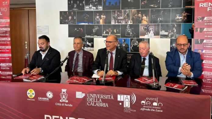 Per la prima volta nella sua giovane storia, il Rende Teatro Festival approda nel cuore del Campus dell’Università della Calabria, trasformando il Teatro Auditorium nella nuova casa della rassegna. Un passaggio simbolico e sostanziale, che segna l’inizio di una rinnovata stagione di dialogo e condivisione tra la città e il mondo accademico. Nel foyer del Tau, la conferenza stampa di presentazione ha visto la partecipazione del rettore Nicola Leone, del prorettore Francesco Raniolo, del sindaco di Rende Sandro Principe, del vicesindaco e assessore allo spettacolo Fabio Liparoti e di Alfredo De Luca, organizzatore del festival che giunge quest’anno alla sua settima edizione.