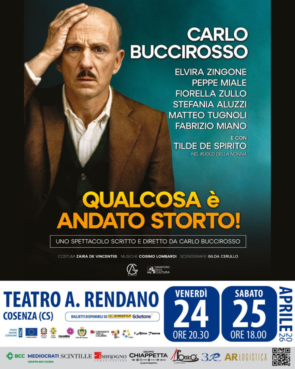 Insieme a Buccirosso salirà sul palco un affiatato cast composto da Elvira Zingone, Peppe Miale, Fiorella Zullo, Stefania Aluzzi, Matteo Tugnoli, Fabrizio Miano e Tilde De Spirito nel ruolo della nonna. La Rassegna L’Altro Teatro è realizzata con il supporto del Comune di Cosenza e cofinanziata con risorse PAC 2014-2020, erogate ad esito dell’Avviso “Distribuzione teatrale 2025” dalla Regione Calabria – Settore Cultura.
